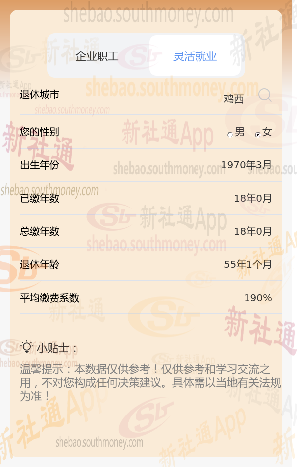 和新社通APP一起看个例子,鸡西工龄18年养老退休金如何计算?