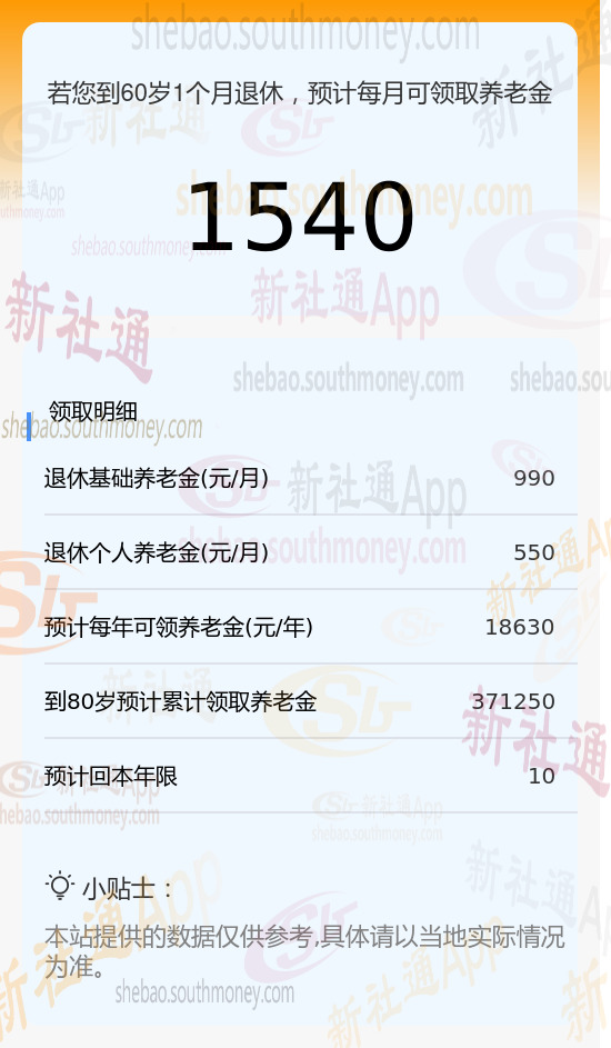 张某,南昌人,1965年出生,是一名拥有17载社保缴费年限的退休男性,缴费档次稳定在70%。岁月流转,他终于迎来了自己的退休时光。借助新社通app养老金在线计算器计算所得: