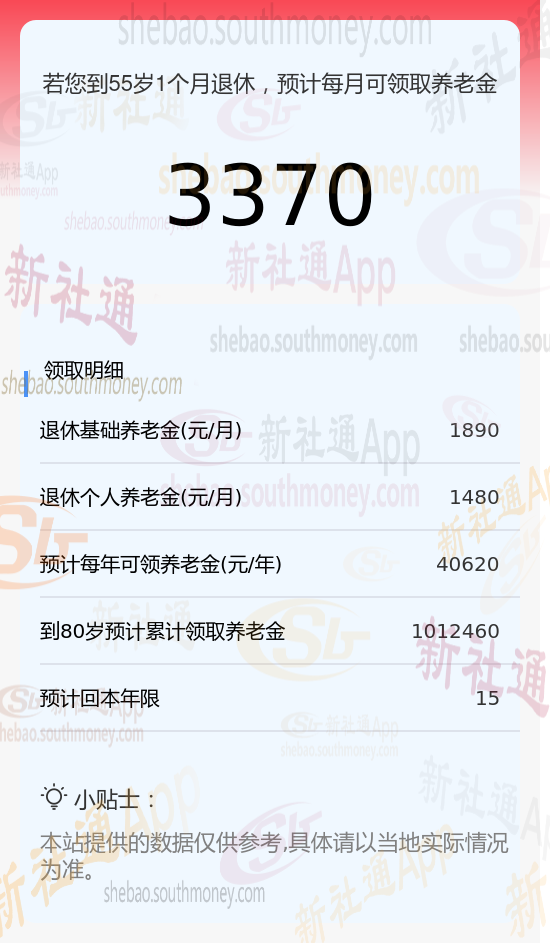 将基础养老金与个人养老金相加,我们就可以得出每月可领取的养老金总额。即1890元(基础养老金)加上1480元(个人养老金),总计约为3370元。这个数字为退休人员提供了一个相对稳定的月度收入来源。