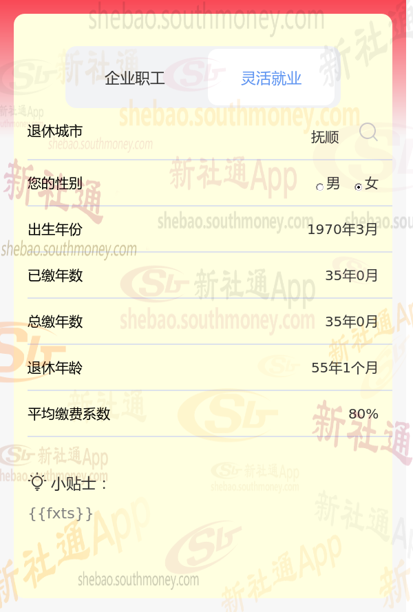以抚顺1970年女性张某为例,假设其按最低标准(缴费系数0.6)缴纳社保,新社通app养老金计算器预设工资增长率等参数为3%。在此情境下,其退休后能领取的养老金数额需通过计算器精确得出,但基于上述条件,预计数额会相对较低。为获准确估算,建议张某使用计算工具按要求输入个人信息进行计算,具体数额依个人情况及当地法规而定。