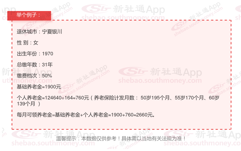 柯某,宁夏银川人,1970年出生,是一名拥有31载社保缴费年限的退休女性,缴费档次稳定在50%。岁月流转,她终于迎来了自己的退休时光。借助新社通app养老金在线计算器计算所得: