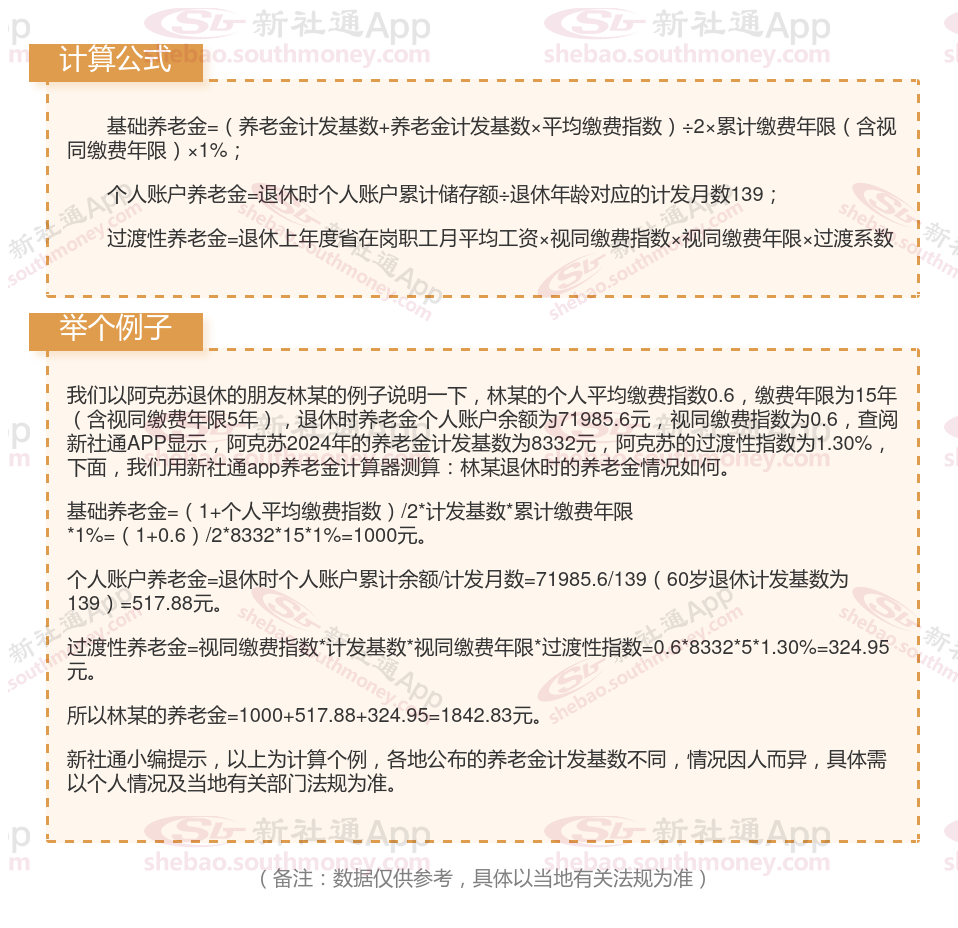 基本养老金是我们退休后最主要的收入来源,由基本养老保险基金支付。它的计算公式为:每月基本养老金=(基本养老金计发基数+指数化月平均缴费工资)÷2×缴费年限×1%。