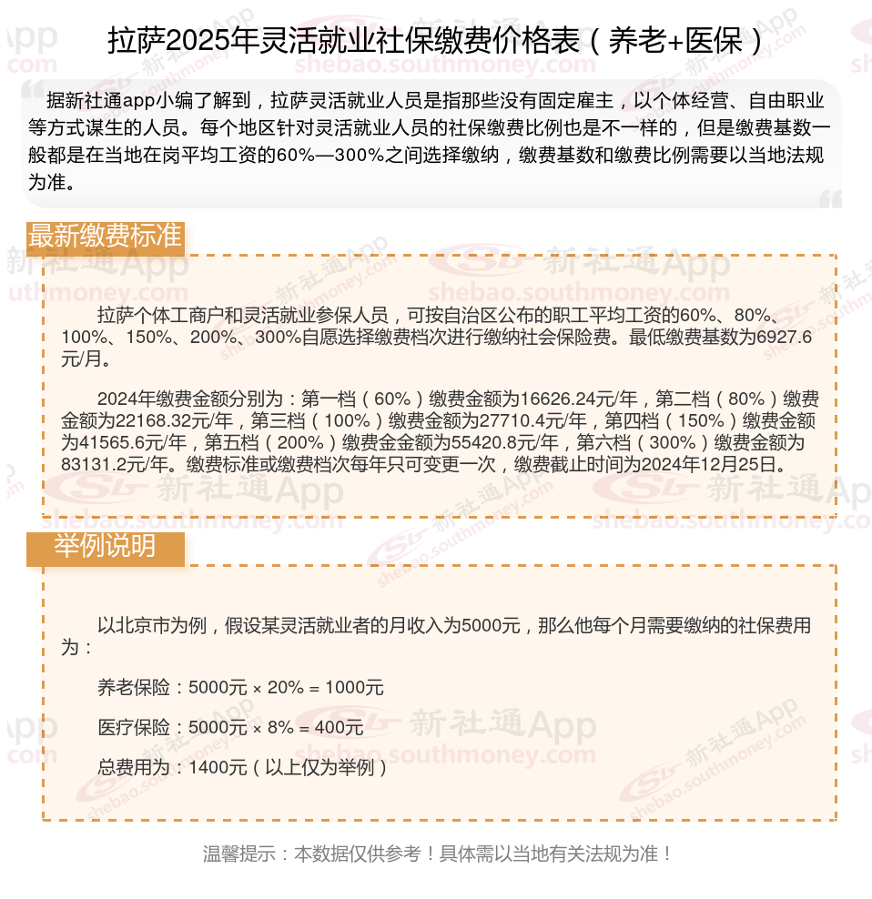 据新社通app数据显示,拉萨灵活就业养老缴费基数明细如下: