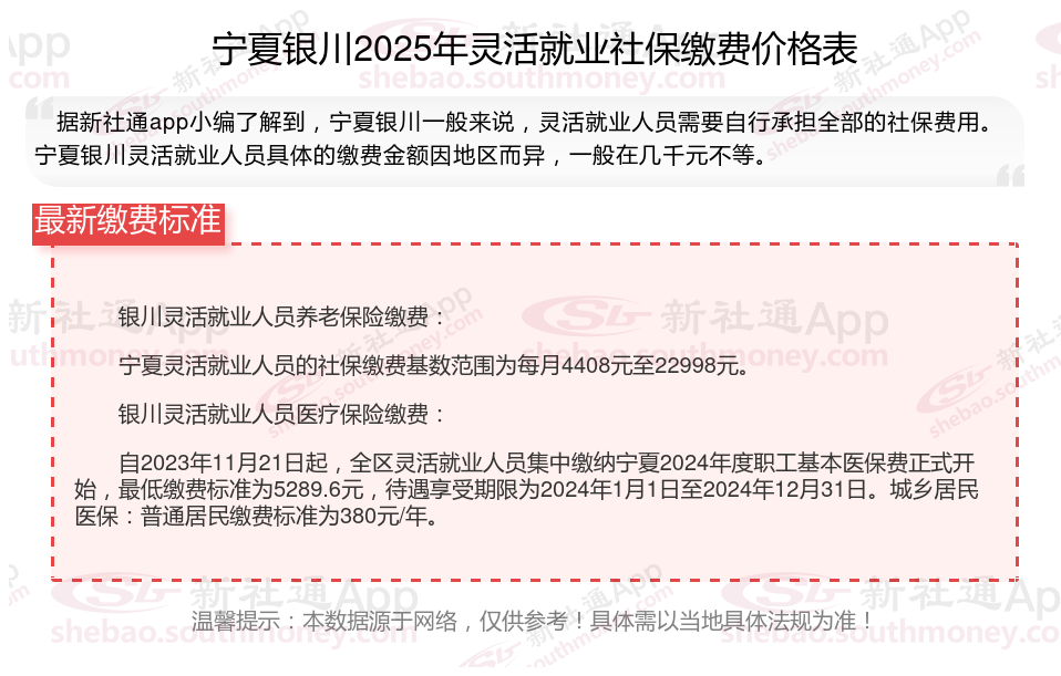 自由职业者缴纳社会保险,一般需要交多少钱一个月?根据新社通app-社保缴费查询工具提供的2025社保缴费标准详情数据: