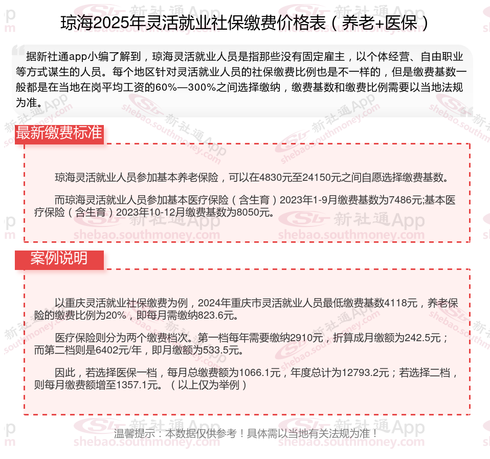 琼海社保缴费多少钱?下表是2024-2025年琼海社保费用明细参考,根据新社通app-社保缴费查询工具提供的最新数据如下: