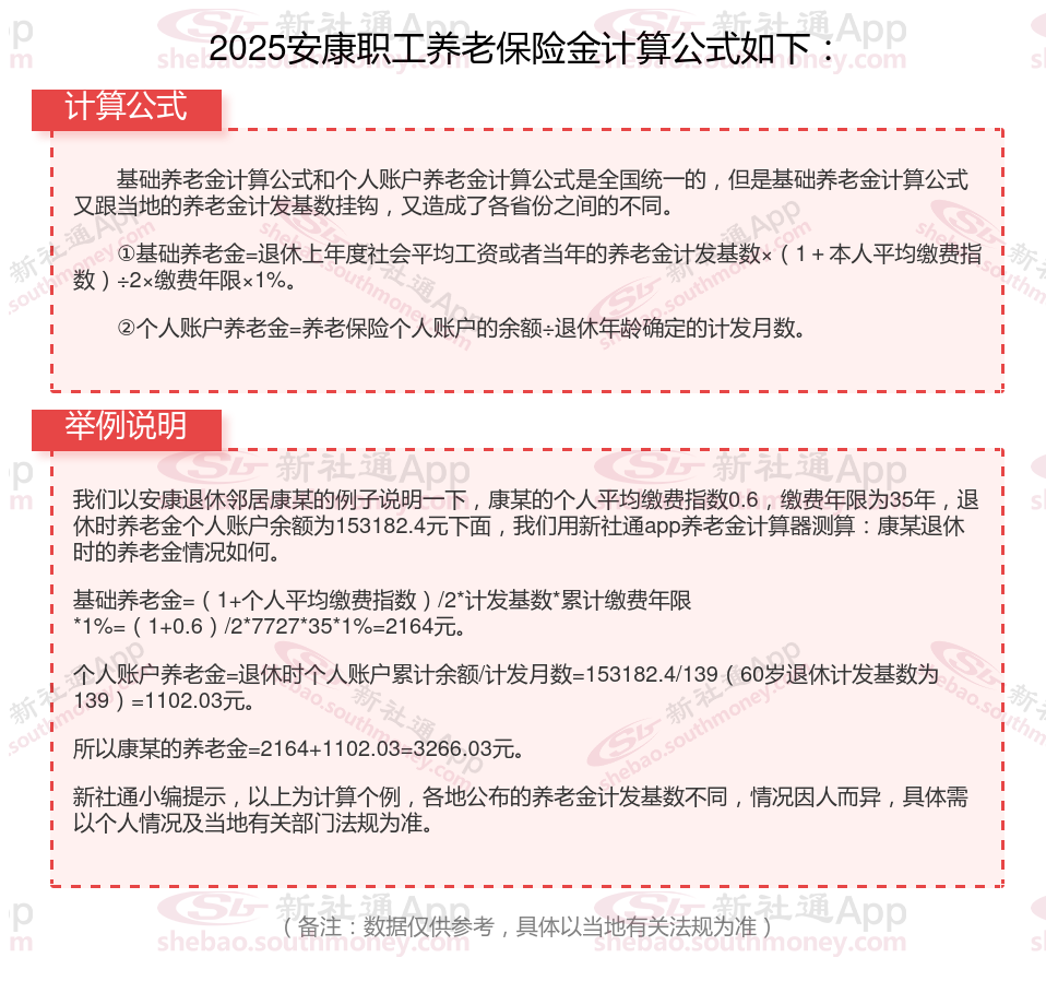 基本养老金=(退休时上年度全市城镇单位就业人员月平均工资+本人指数化月平均缴费工资)÷2×缴费年限×1%。