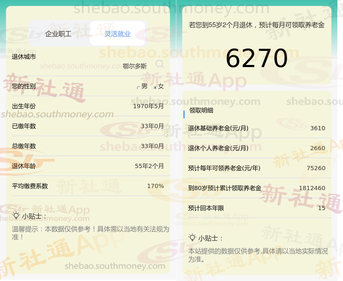 新社通app养老金计算器计算所得: