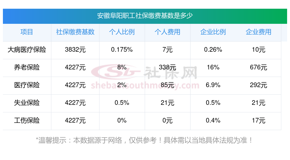 安徽阜阳社保缴纳情况是怎样的?一起和新社通-app小编一起来看看下面的明细表: