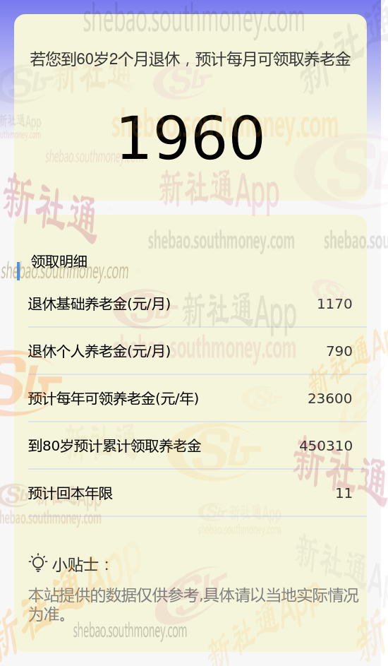 新社通app养老金计算器计算所得: