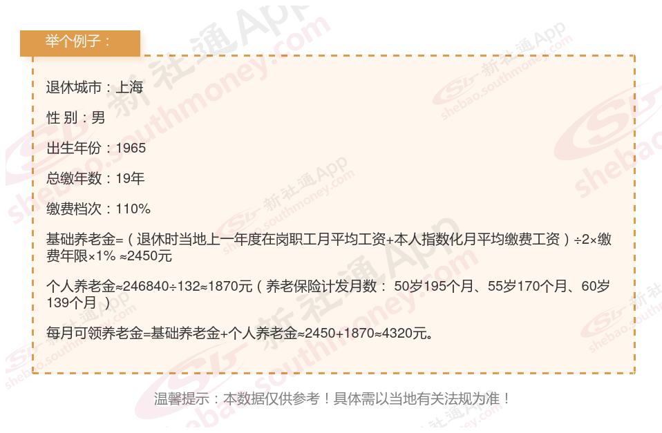 基于这些关键信息,我们使用新社通app养老金计算器对他未来的养老金进行了详细估算:
