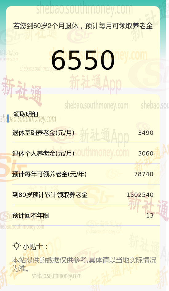 另外,(社保网为了方便计算,工资增长率、个人账户记账利率、未来工资增长率,新社通app养老金计算器计算工具都默认3%。