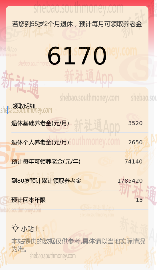 个人养老金:个人账户养老金=退休时个人账户累计储存额÷退休年龄对应的计发月数。通过公式计算出每月大约2650元。