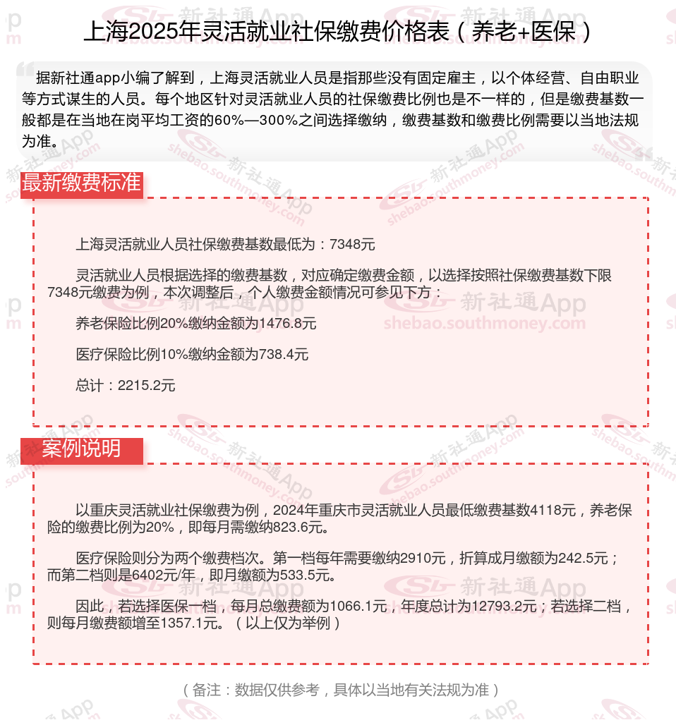 个人缴纳社会保险,一般需要交多少钱一个月?根据新社通app-社保缴费查询工具提供的2025社保缴费标准详情数据: