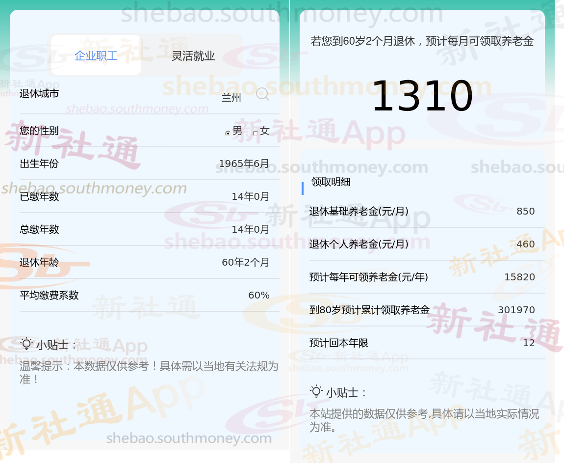 孔某是一位男性,1965年出生,现已退休。他居住的城市是甘肃兰州,在职业生涯中,他累计缴纳了14年的社会保险,缴费档次为60%。