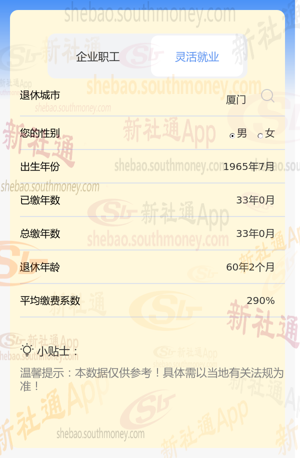 和新社-app一起看个例子,厦门工龄33年养老退休金如何计算?
