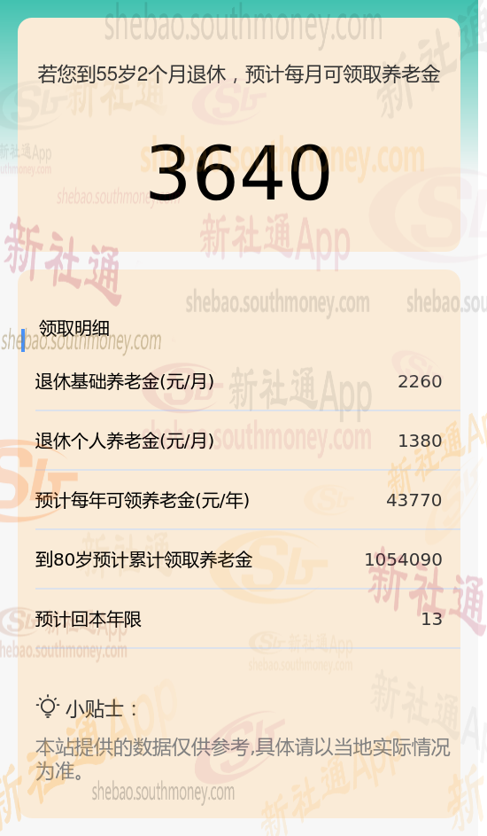 谢某,作为一位勤勉的职工,他的养老保险缴纳记录长达30年之久,且缴费档次一直保持在较高的110%水平。基于这些关键数据,我们利用新社通app养老金计算器,结合最新的养老保险法规,对其养老金进行了如下估算: