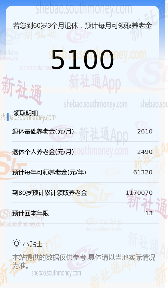 同事希某退休城市在郑州,性别:男,出生年份:1965为例,假设其按最低标准(缴费系数0.6)缴纳社保,新社通app养老金计算器预设工资增长率等参数为3%。在此情境下,其退休后能领取的养老金数额需通过计算器精确得出,但基于上述条件,预计数额会相对较低。为获准确估算,建议希某使用计算工具按要求输入个人信息进行计算,具体数额依个人情况及当地法规而定。