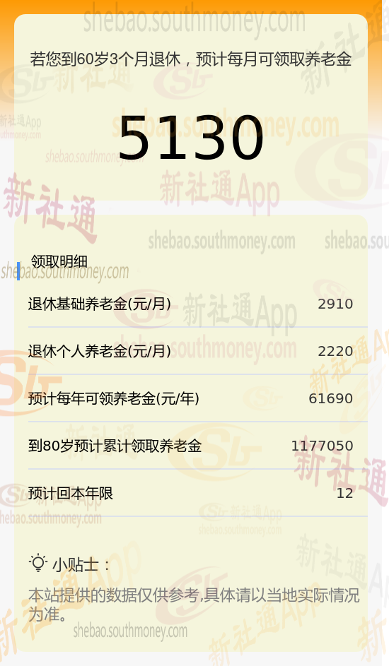 养老金总和:两者合计2910元+2220元,您每月的养老金总额为5130元。