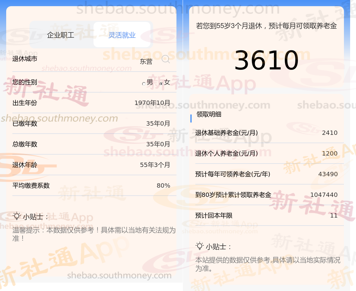近日,山东东营一位女性灵活就业退休人员向我们咨询,她1970年出生的,拥有35年的工龄。她提到自己的养老保险每月按照80%档位缴纳,并询问据此估算,每月能领取的养老金能否超过3100元。