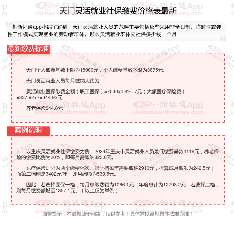 据新社通app数据显示,2024-2025年天门灵活就业人员养老保险的缴费标准: