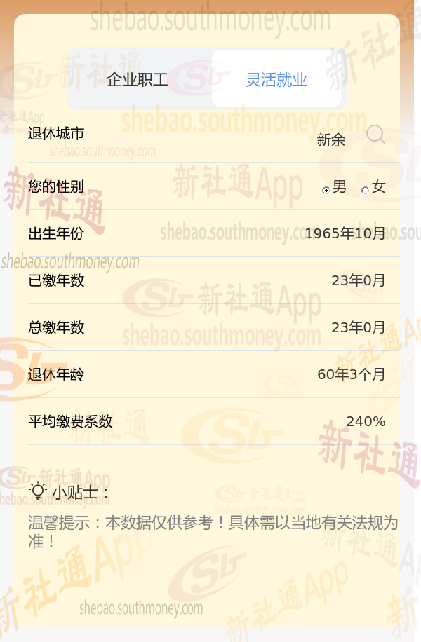 新社通app养老金计算器计算所得: