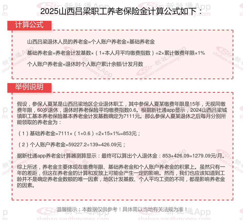 基础养老金计算公式为:(全省上年度在岗职工月平均工资+本人指数化月平均缴费工资)÷2×缴费期限×1%。