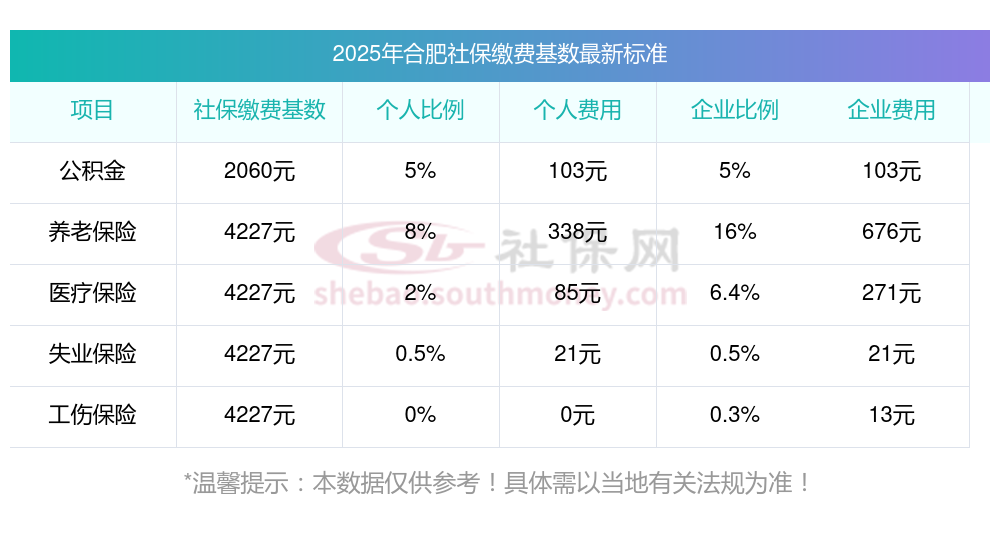 合肥社保缴纳情况是怎样的?一起和新社小编一起来看看下面的明细表: