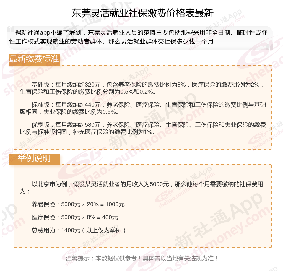 据新社通app数据显示,东莞灵活就业养老保险缴费基数2024-2025年最新标准如下: