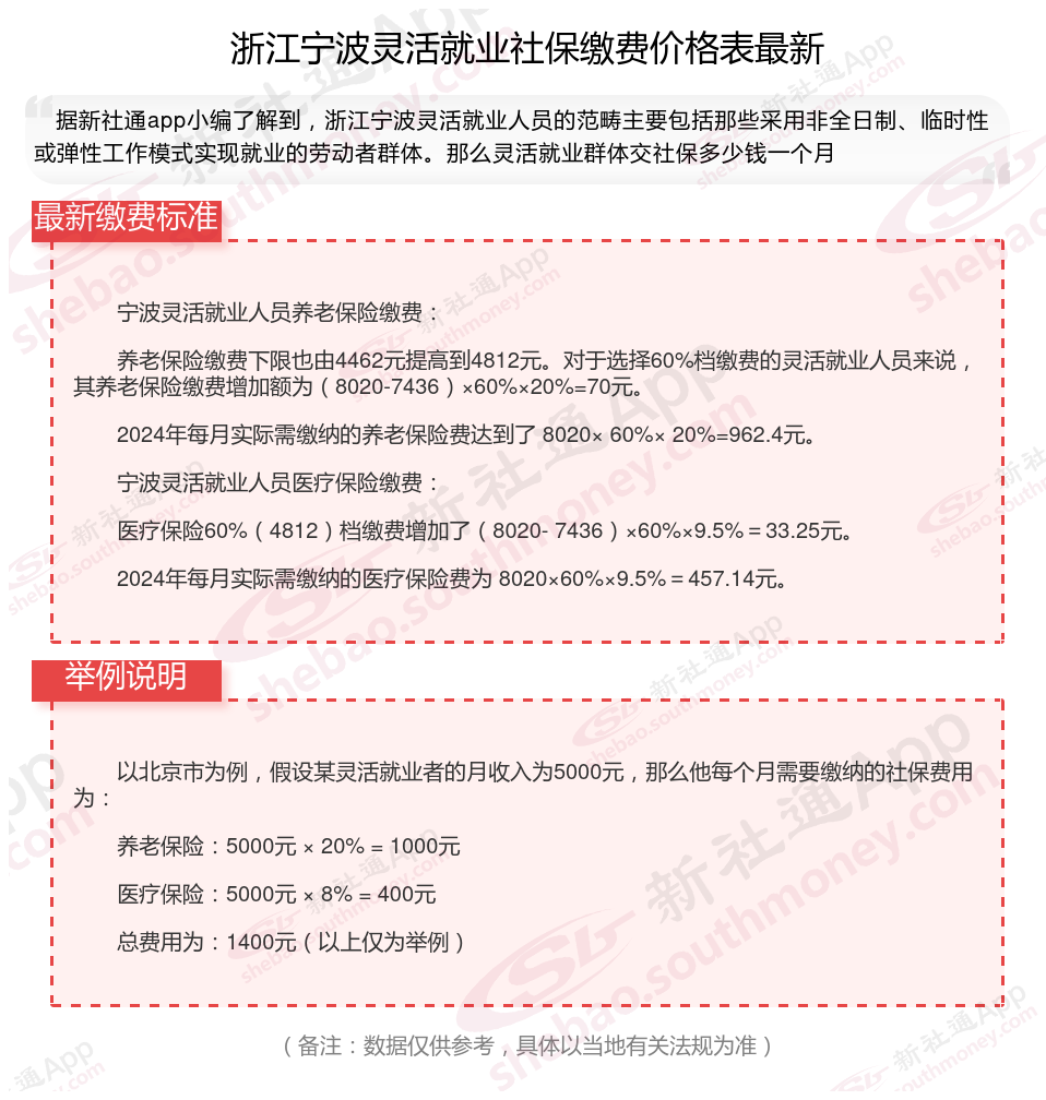 浙江宁波灵活就业自己交社保一个月要交多少钱?根据新社通app-社保缴费查询工具提供的最新数据如下: