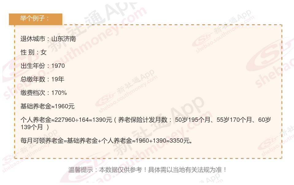 【注:本人指数化月平均缴费工资=全省上年度在岗职工月平均工资×本人平均缴费指数】。通过公式计算出每月大约1960元。