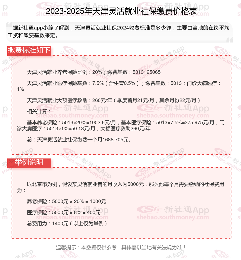 天津灵活就业人员基本养老保险缴费基数暂按不低于5013元;