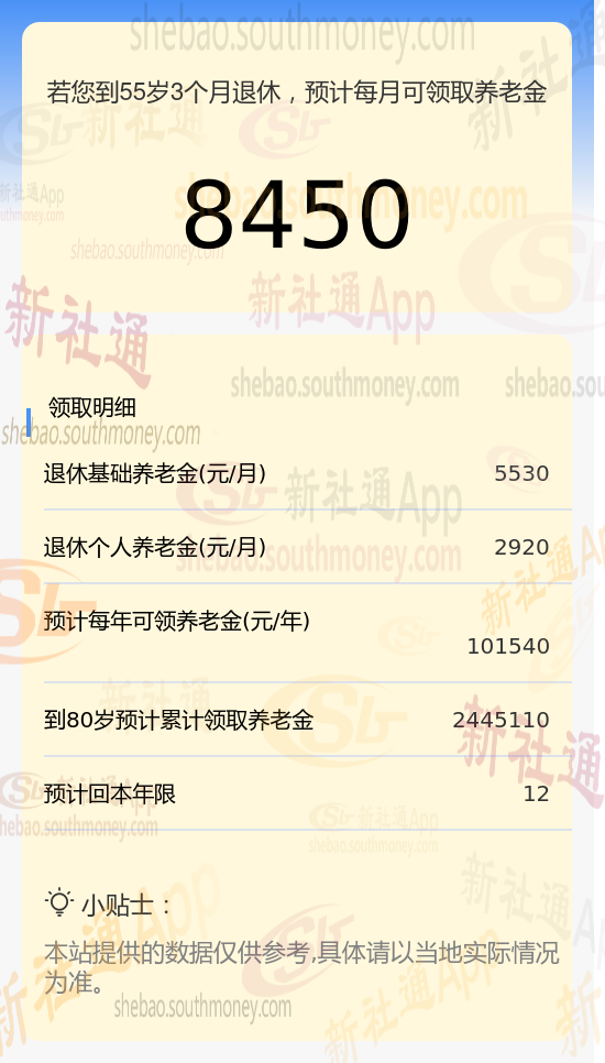 养老金总和:两者相加,每月养老金总额达到8450元。
