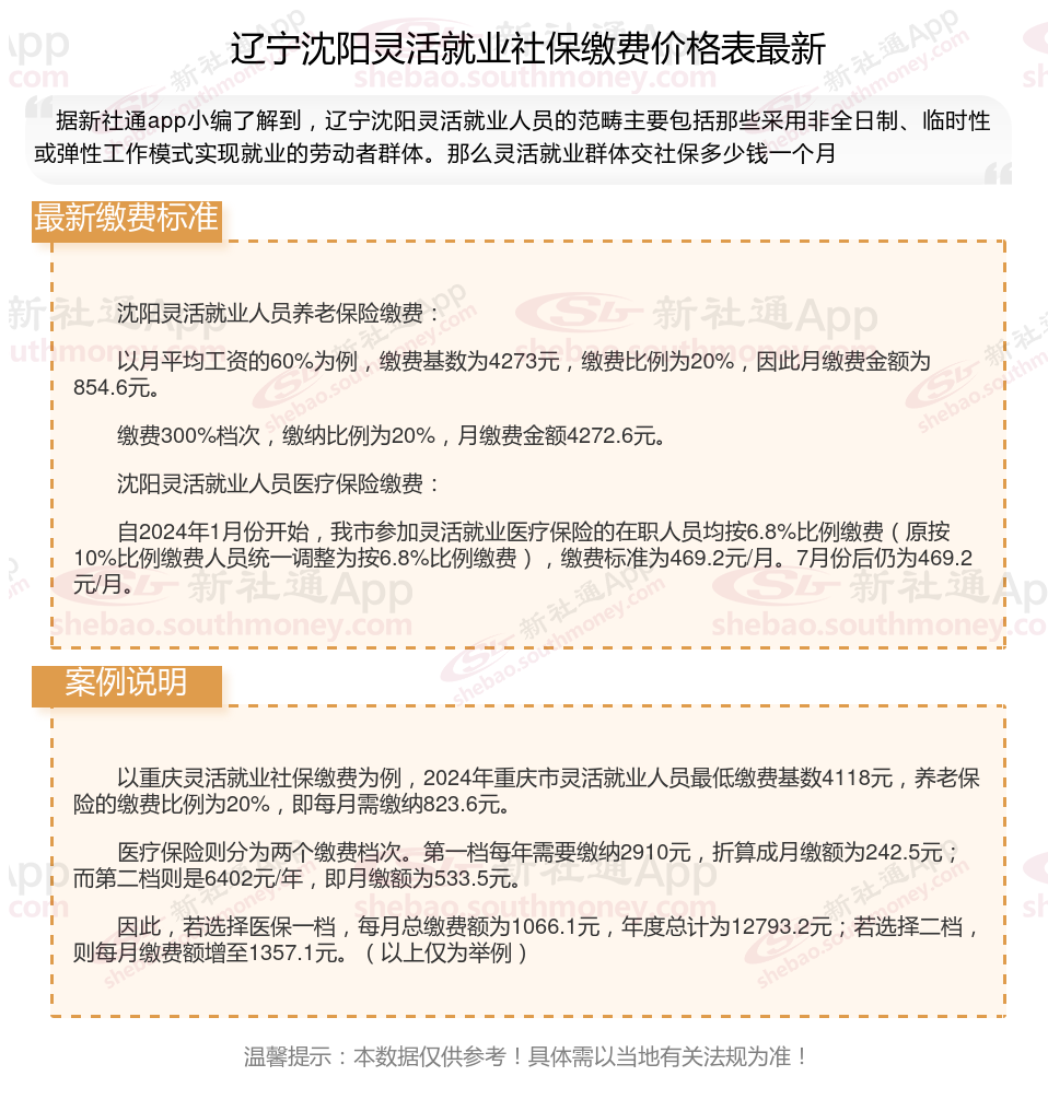 辽宁沈阳社保一个月自费多少钱?根据新社通app-社保缴费查询工具提供的最新数据如下: