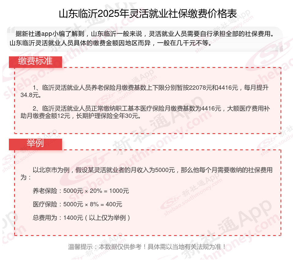 据新社通app数据显示,山东临沂灵活就业养老保险缴费基数2024-2025年最新标准如下:
