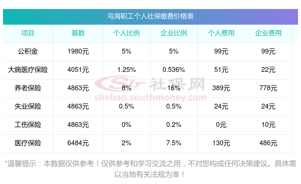 2024年乌海社保缴费多少钱?下表是2023-2024年乌海社保费用明细参考,新社通app-社保缴费查询工具提供的最新数据如下: