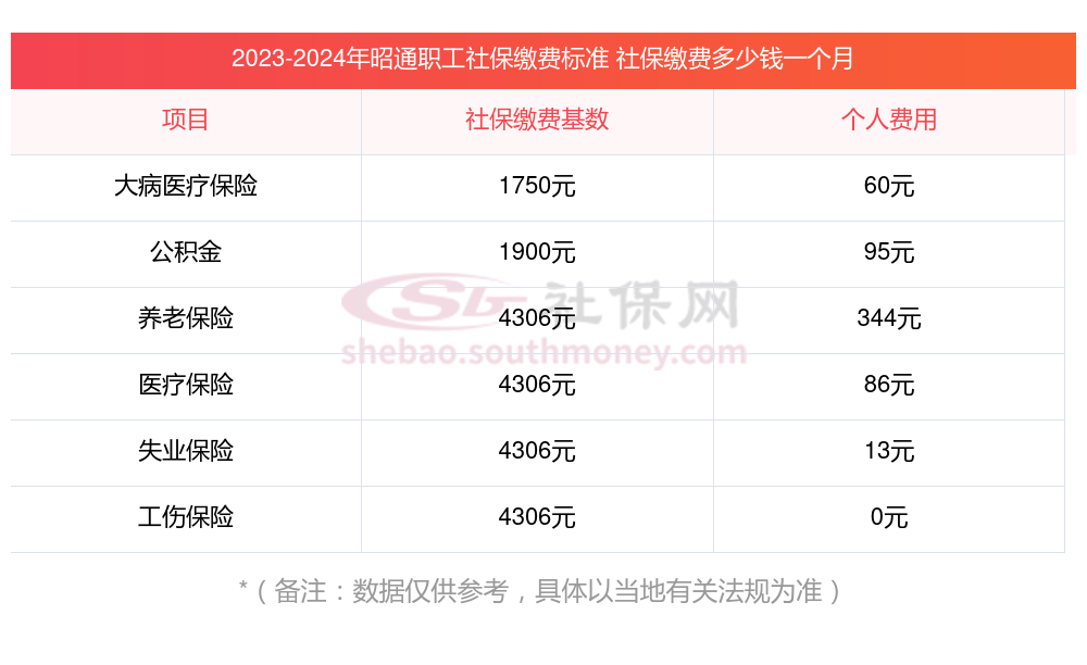 2024年昭通社保缴费多少钱?下表是2023-2024年昭通社保费用明细参考,新社通app-社保缴费查询工具提供的最新数据如下: