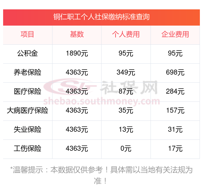 铜仁的社保缴费情况,依据2024年最新的缴费标准,我们可以详细地进行如下说明。这些标准是根据新社通app-社保缴费查询工具提供的数据整理得出的: