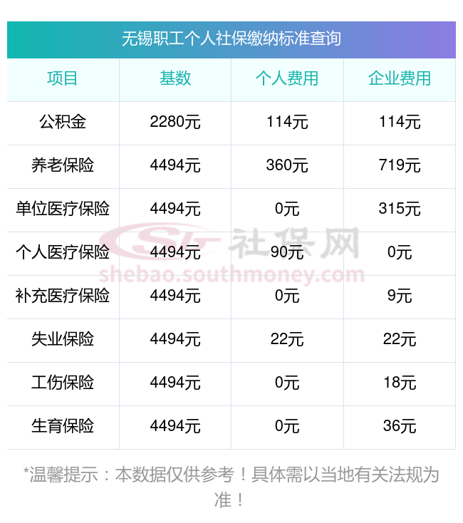 2025年无锡社保缴费多少钱?下表是2023-2024年无锡社保费用明细参考,新社通app-社保缴费查询工具提供的最新数据如下: