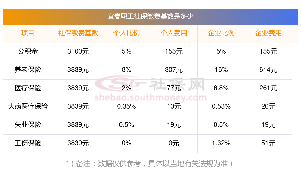 宜春的社保缴费情况,依据2025年最新的缴费标准,我们可以详细地进行如下说明。这些标准是根据新社通app-社保缴费查询工具提供的数据整理得出的: