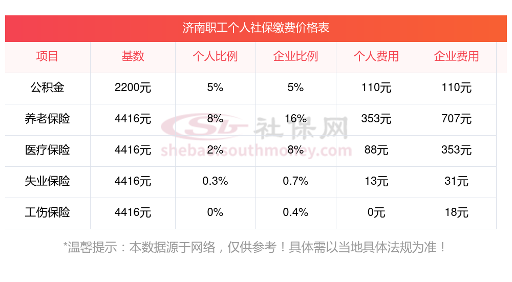 社保缴纳比例一览,社保公司和个人各交多少?下表是2023-2024年济南社保费用明细参考,新社通app-社保缴费查询工具提供的最新数据如下: