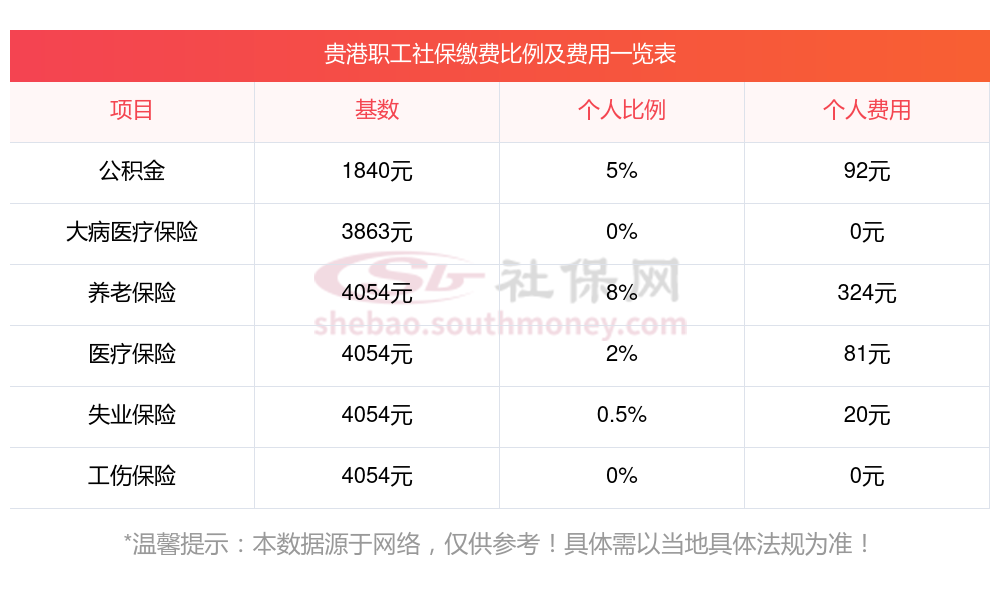 贵港缴费社保比例一览社保公司和个人各交多少?下表是2024-2025年贵港社保费用明细参考,新社通app-社保缴费查询工具提供的最新数据如下:
