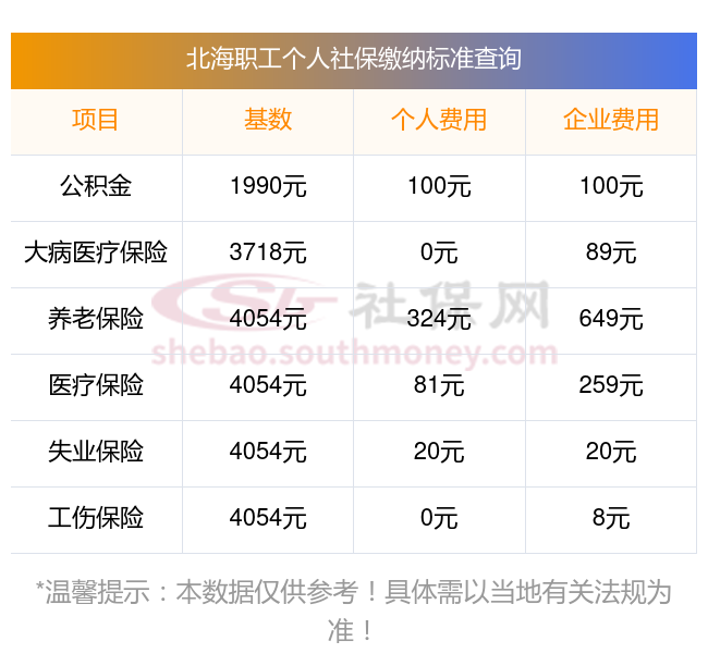 北海缴费社保比例一览 社保公司和个人各交多少?下表是2024-2025年北海社保费用明细参考,新社通app-社保缴费查询工具提供的最新数据如下: