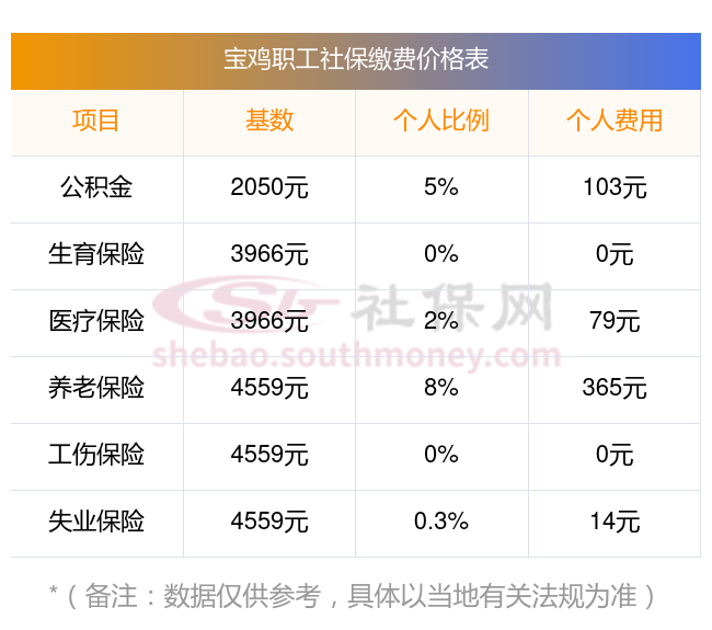 宝鸡社保一个月交多少钱,个人缴纳多少钱一个月?下面和新社丫丫一起来看看宝鸡最低标准社保费用明细参考,新社通app-社保缴费查询工具提供的最新数据如下: