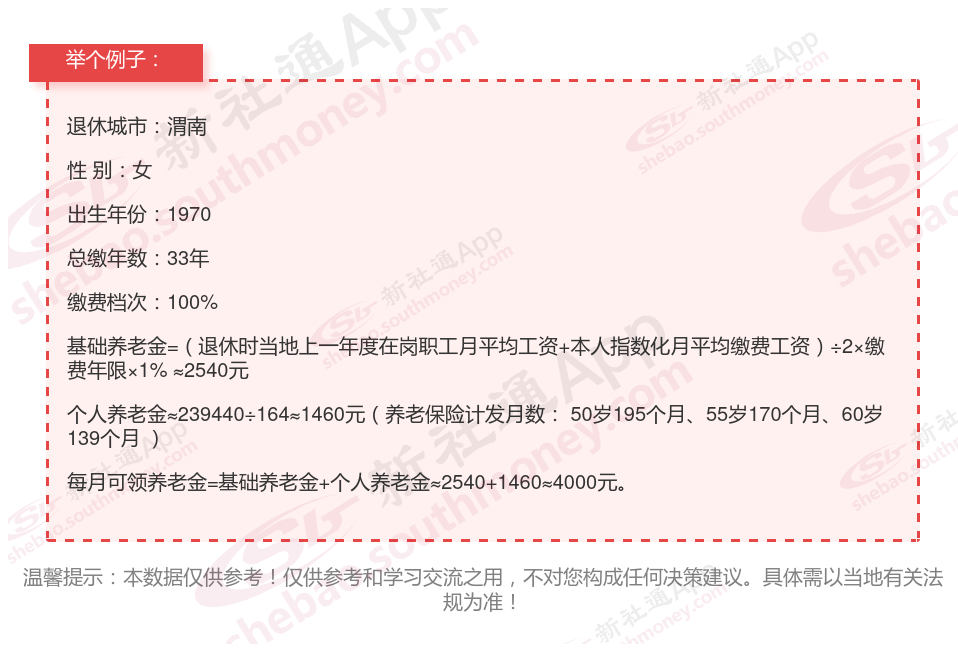 个人档案:女性,1970年出生,渭南退休职工,社保缴费33载,档次100%。