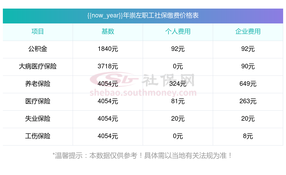 崇左社保多少钱一个月?下面和新社-app一起来看看崇左最低标准社保费用明细参考,新社通app-社保缴费查询工具提供的最新数据如下: