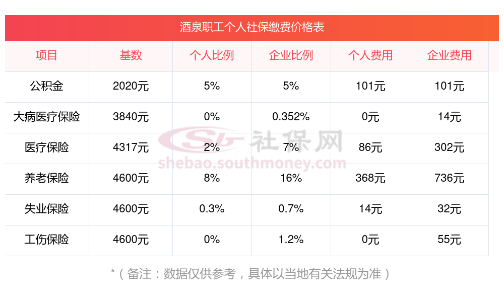 酒泉社保缴纳比例公司和个人按照以下方式计算?: