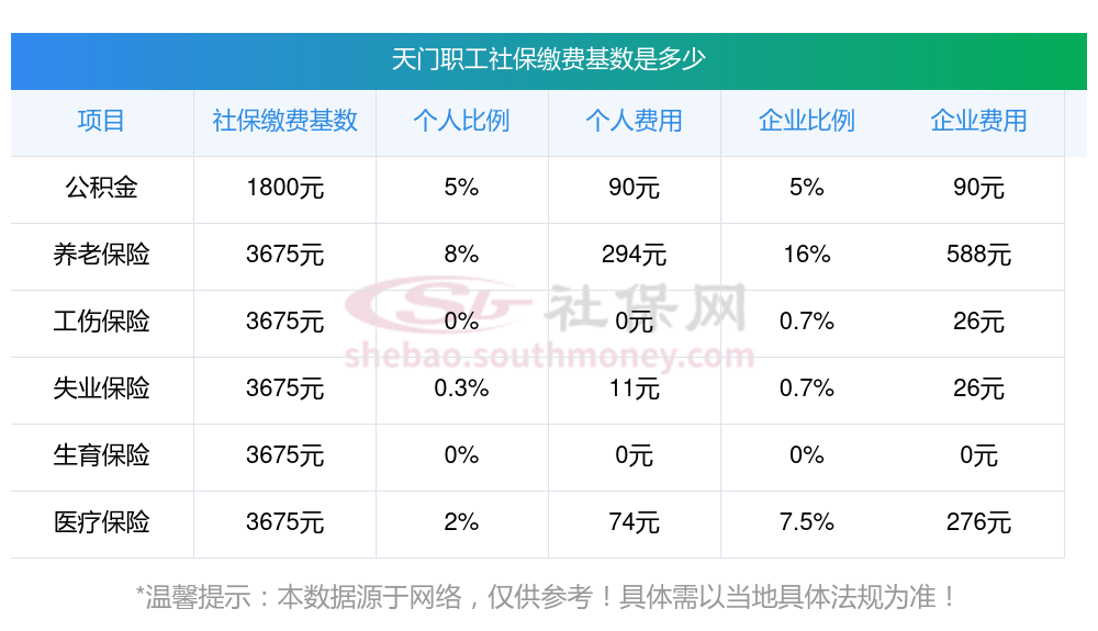 根据新社通app-社保缴费查询工具提供的最新数据, 天门社保缴费比例社保缴费比例包括以下几个部分:
