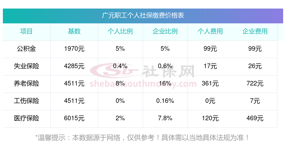 四川社保多少钱一个月?下表是2024-2025年广元社保费用明细参考,新社通app-社保缴费查询工具提供的最新数据如下: