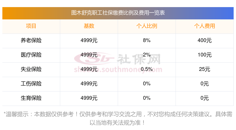 图木舒克缴费社保比例一览 社保公司和个人各交多少?下表是2024-2025年图木舒克社保费用明细参考,新社通app-社保缴费查询工具提供的最新数据如下: