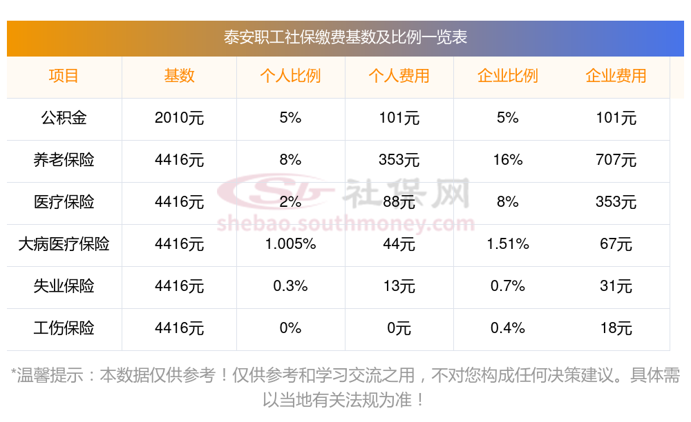 根据新社通app-社保缴费查询工具提供的最新数据,泰安地区2025年的社保缴费标准已经确定。以下是各项保险的缴费比例及相应金额(基于一定的缴费基数)的详细说明: